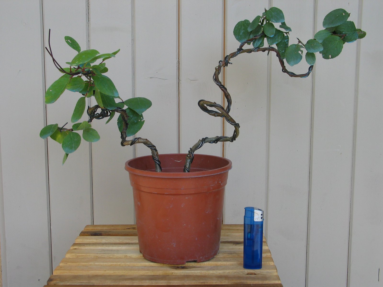 Cette année j’ ai realiser une premiere mise en forme du tronc , il etait encore souple donc j en est profité pour les tordres un peu dans tout les sens. j ’ ai essayer de realiser quelques choses de "graphique" a mon gôut , du moins c etait mon idée de base !