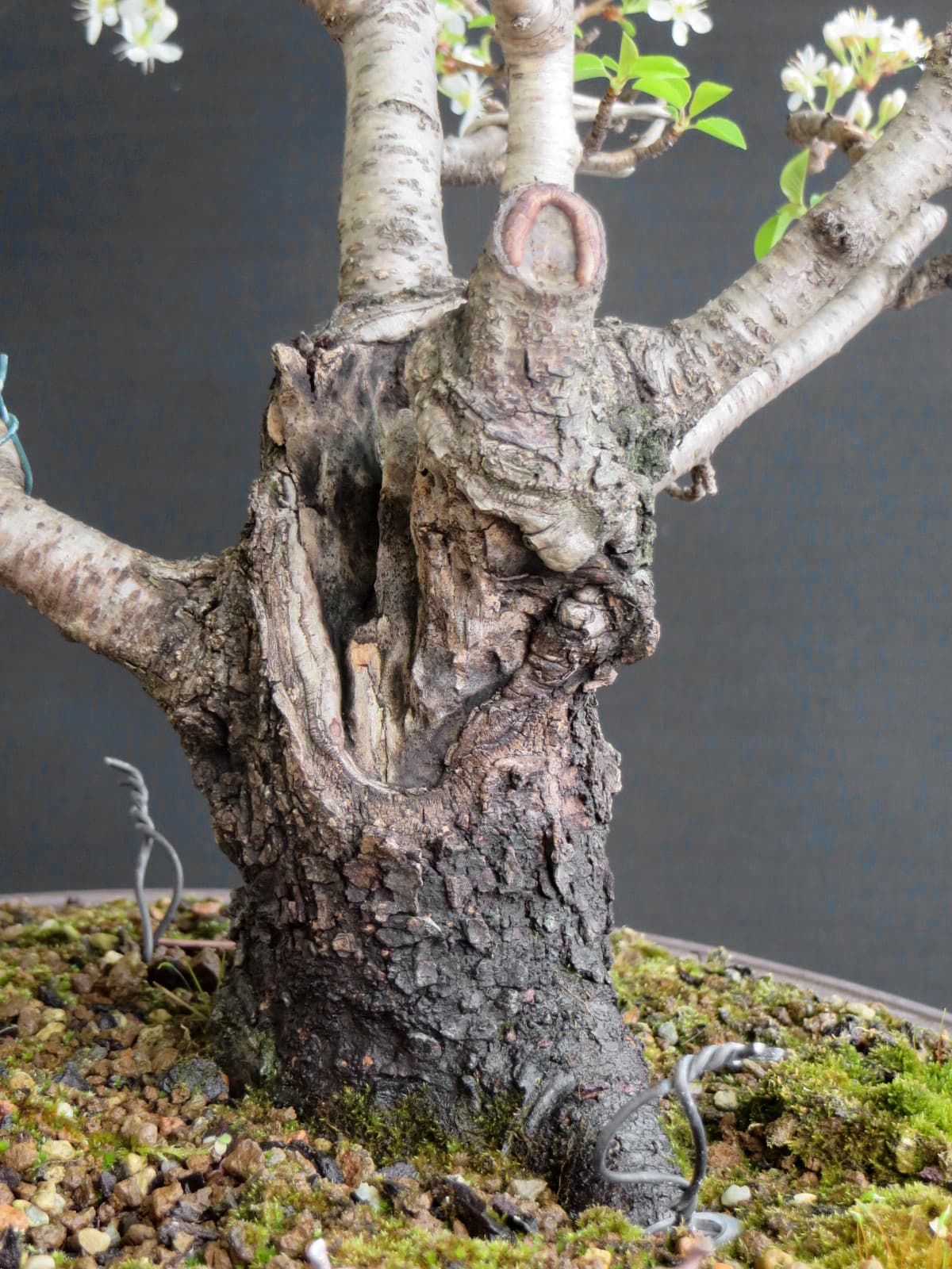 Il pousse bien, mais des portions entières de branche se retrouvent aujourd’hui sans feuilles. Les bourgeons à fleurs inhibent totalement les bourgeons à feuilles, contrairement à ce qui se passe, par exemple, chez Prunus spinosa.