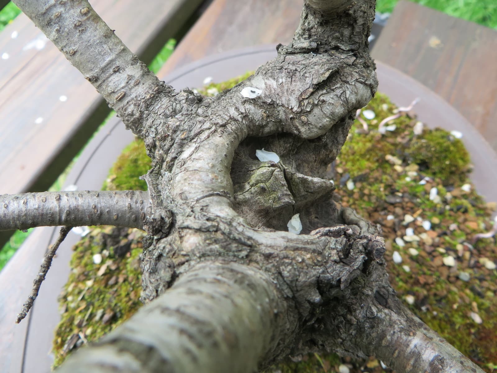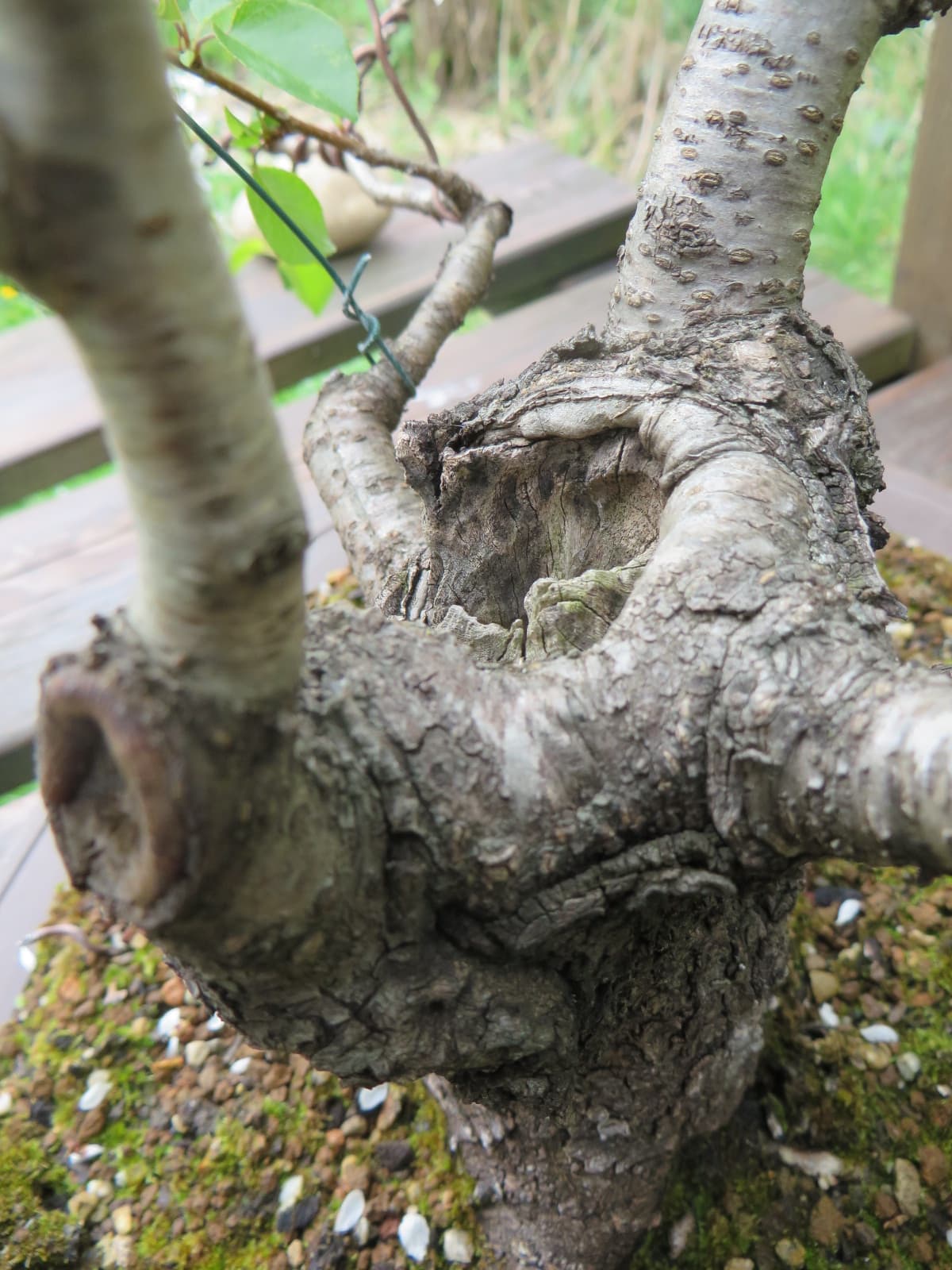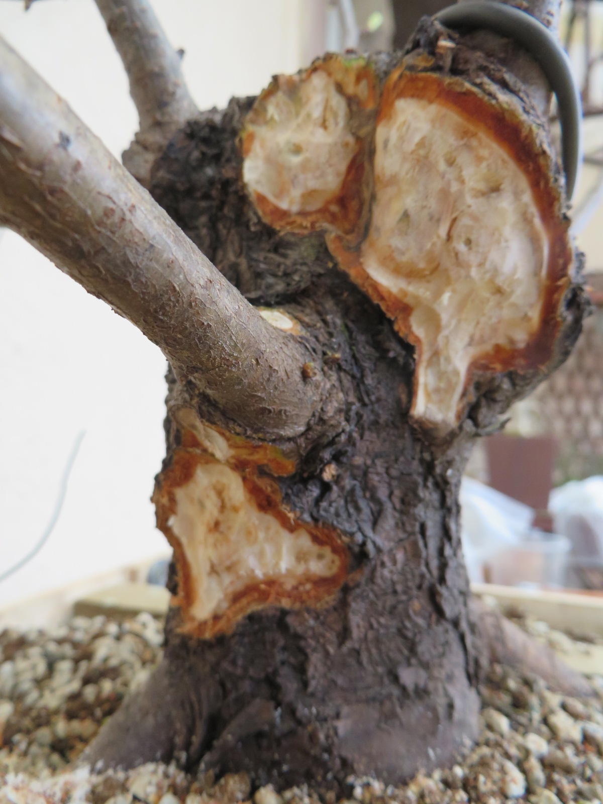 La peur au ventre, j’ai entrepris de rogner ce renflement. Il fallait éliminer la partie sous la branche.