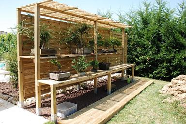 bonjour a tous je désir faire un support a bonsai exterieur, avec possibilité de palissade arrière ( a cause du vend ou soleil)