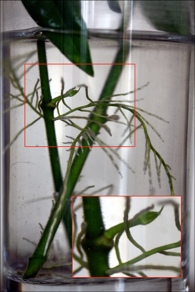 Le verre d'eau est à une dizaine de cm de la fenêtre, j'ai fait également des boutures dans un mélange de terreau et d'akadama que j'arrose régulièrement, mais là pour le moment je ne vois pas d'évolution.