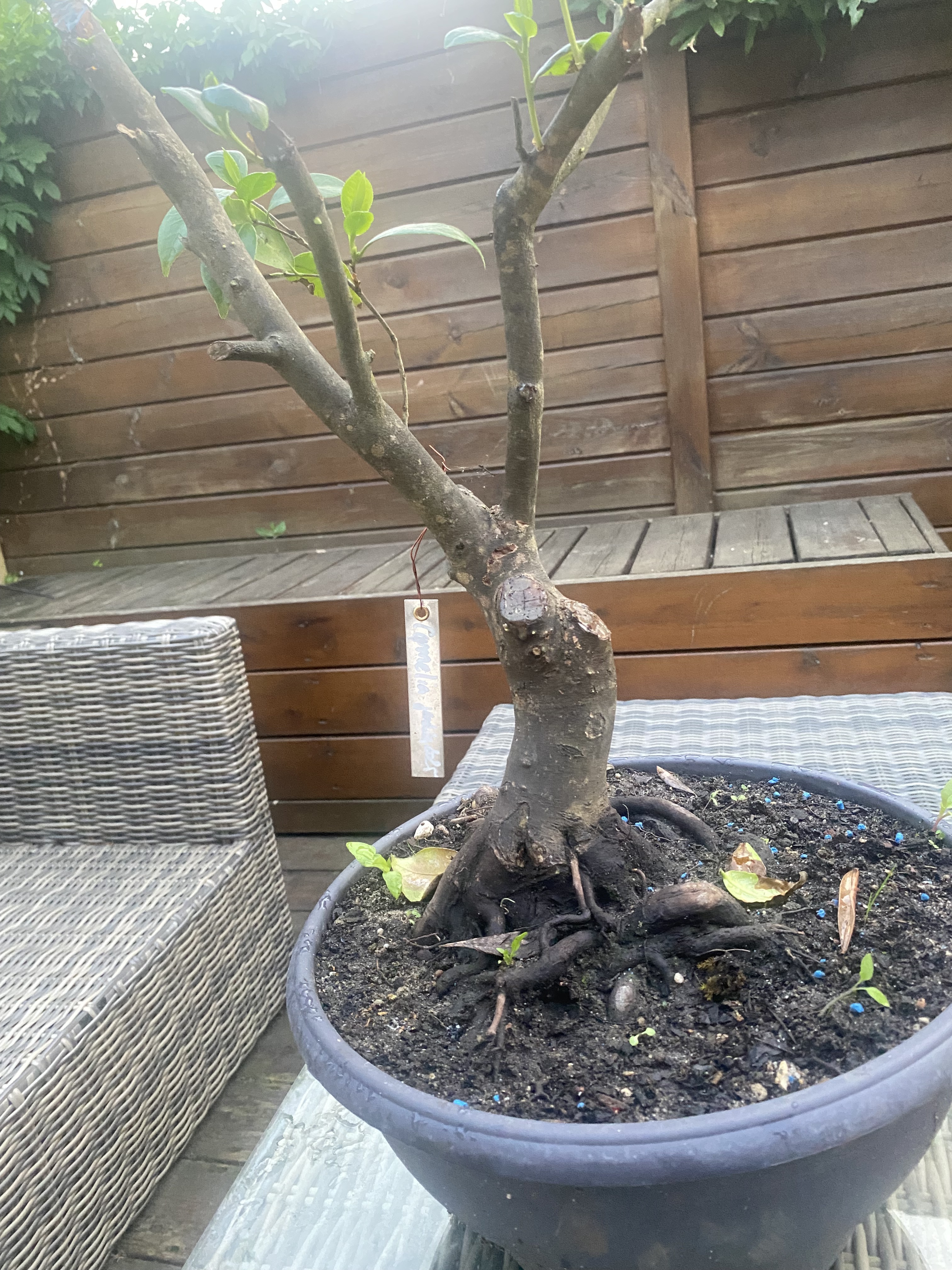 En jetant un œil à l’arbre j’ai constaté qu’il avait du potentiel surtout au niveau du nebari…