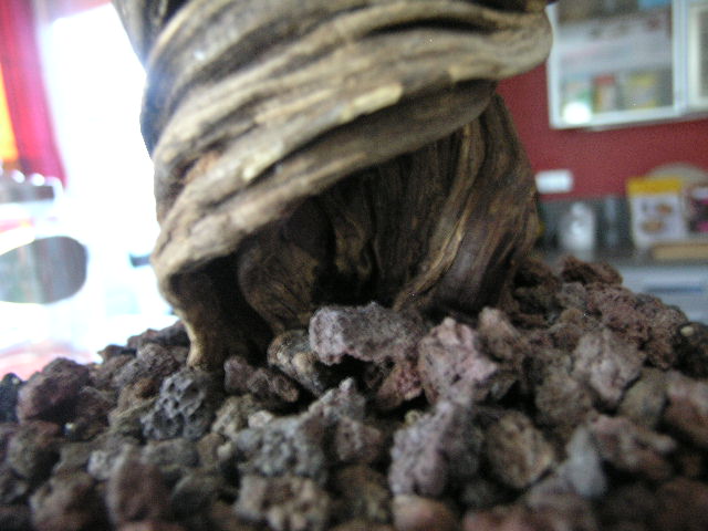 Il est dans un substrat essentiellement composé de pouzzolane je dirais 80% le reste c’est du "terreau pour légumes". Je souhaite le rempoter dans 100% pumice en mars 2013.