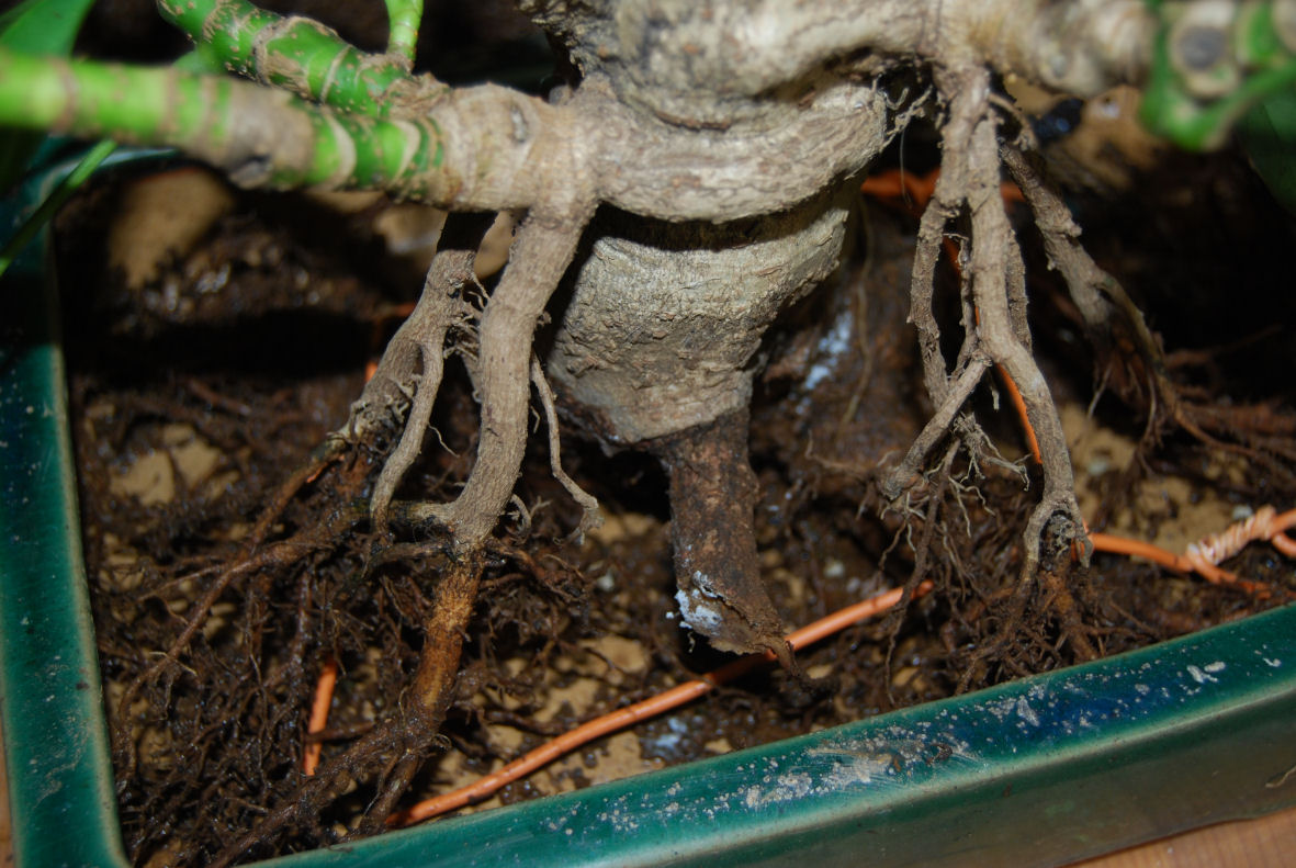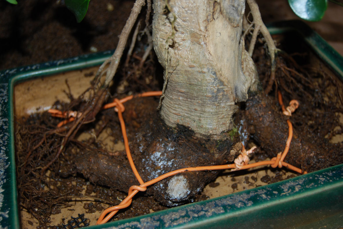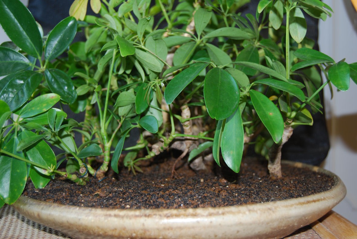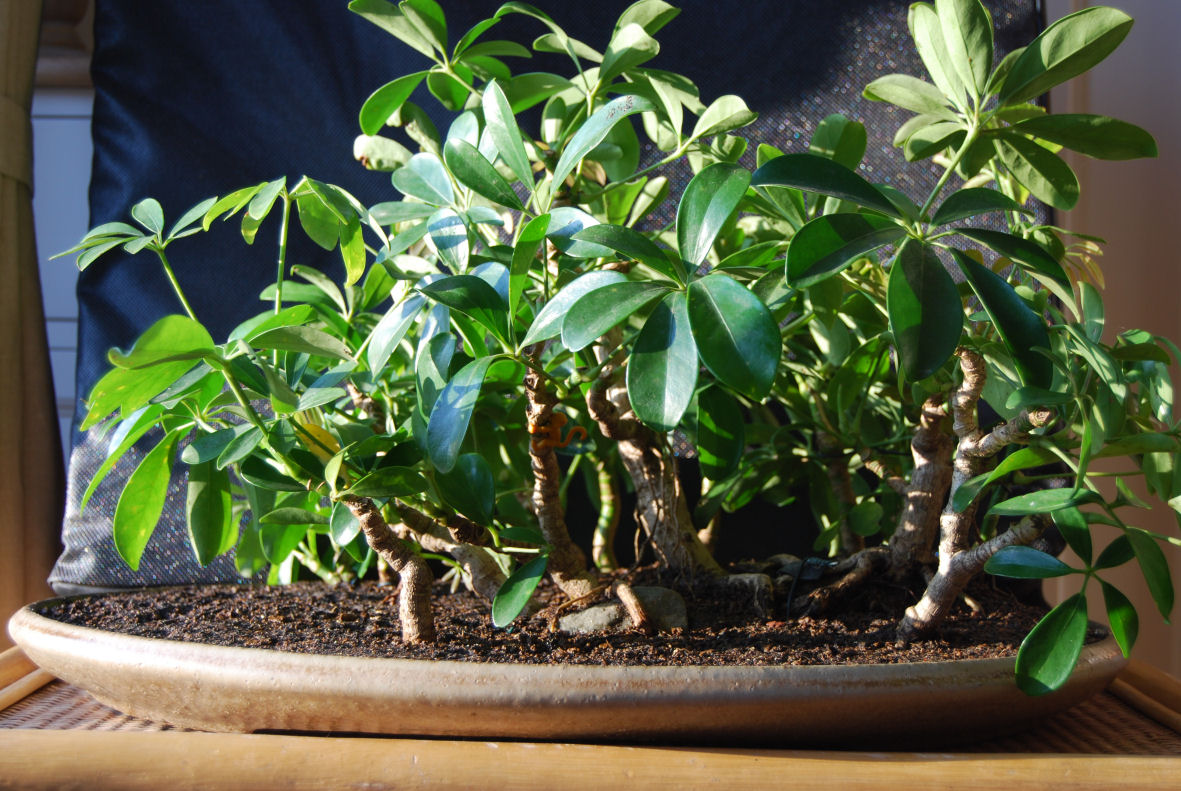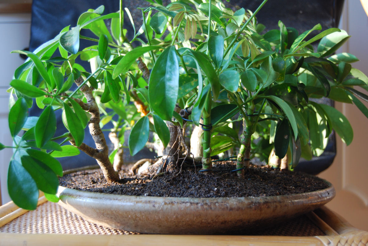 J'ai bien en tête des images de forêts de schef faites avec des boutures comme la mienne mais plus hautes. Rien que dans un de mes premiers bouquins de bonsai, un vieux de Rémi Samson. Tous ces tubes gris sans mouvements ne me plaisent pas du tout. Je voulais éviter ça à tout prix.