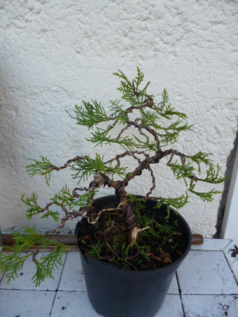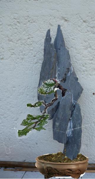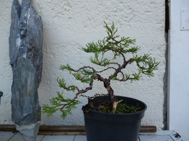 Voila un projet pour ce printemps,pour l’instant la pierre est a l’ombre avec du keto et de la mousse aux endroits ou il y avait de la colle.Je vais essayé de faire passer le junip par le trou afin que les racines soient derrière celle ci…