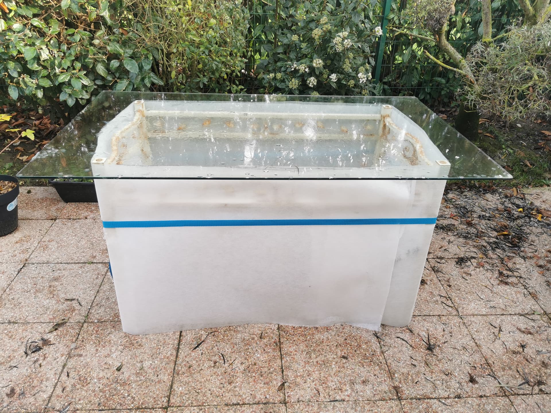 C’est mieux que rien mais avec le géotextile souple qui n’est pas fixé en bas, j’ai peur qu’au moindre coup de vent, l’air froid s’infiltre par en bas