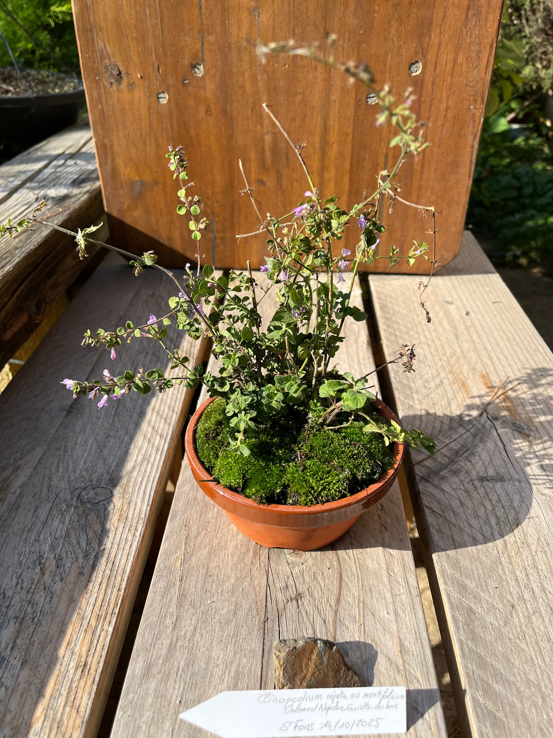 Et la plus belle découverte parce qu’elle a embaumé tout mon trajet et les sacoches : la clinopodium nepeta, connue sous plusieurs noms plus communs comme calament nepeta ou sariette des bois. Elle n’est pas très presentable cette année, et je ne l’ai pas taillée. Je n’ai pas pris non plus la plus feurie mais elle sentait tellement bon… je l’embellirai pour l’an prochain et on pourra comparer l’evolution.