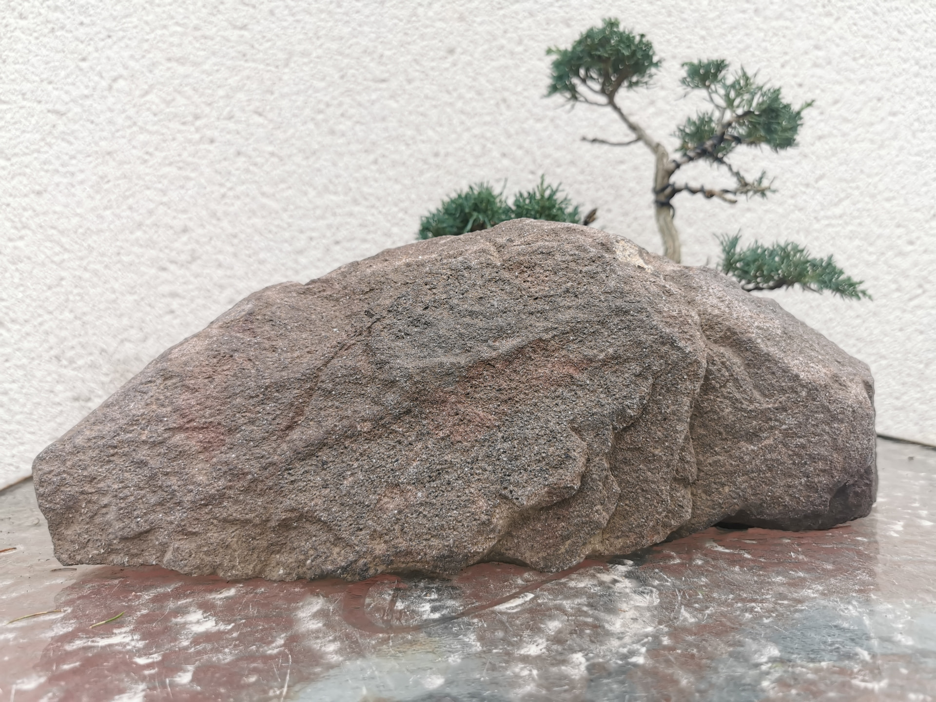Un suiseki est littéralement une pierre d’eau qui présente de ce fait une usure et une patine qui font sa beauté.