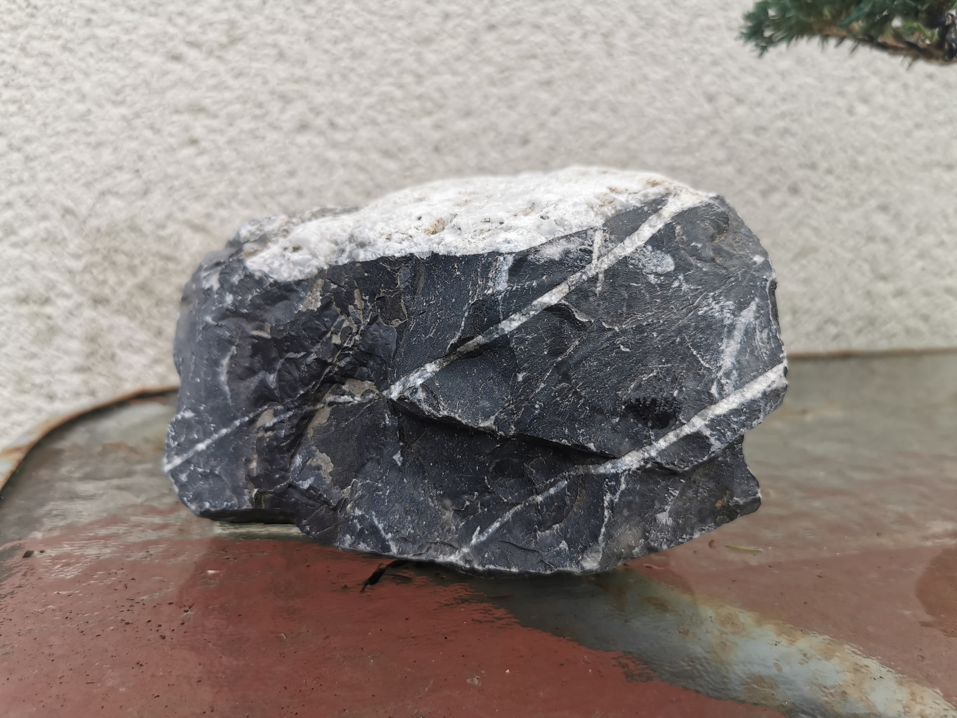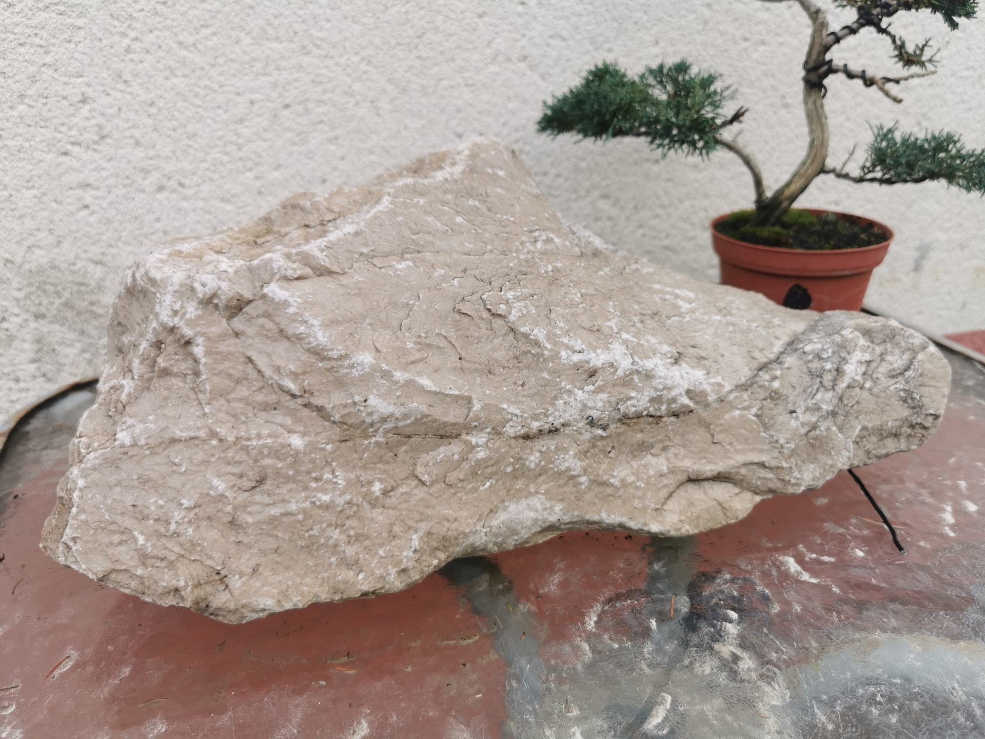 Ce que je veux dire cest que puisque ça ne peut pas être un suiseki (elle n’a pas été patinée par l’eau et ne correspond pas aux canons du suiseki), tu n’as qu’à inventer une nouvelle catégorie et on pourrait l’appeler komichiseki (on remplace le caractère 水, eau de suiseki par le caractère 小道, komichi qui signifie sentier).