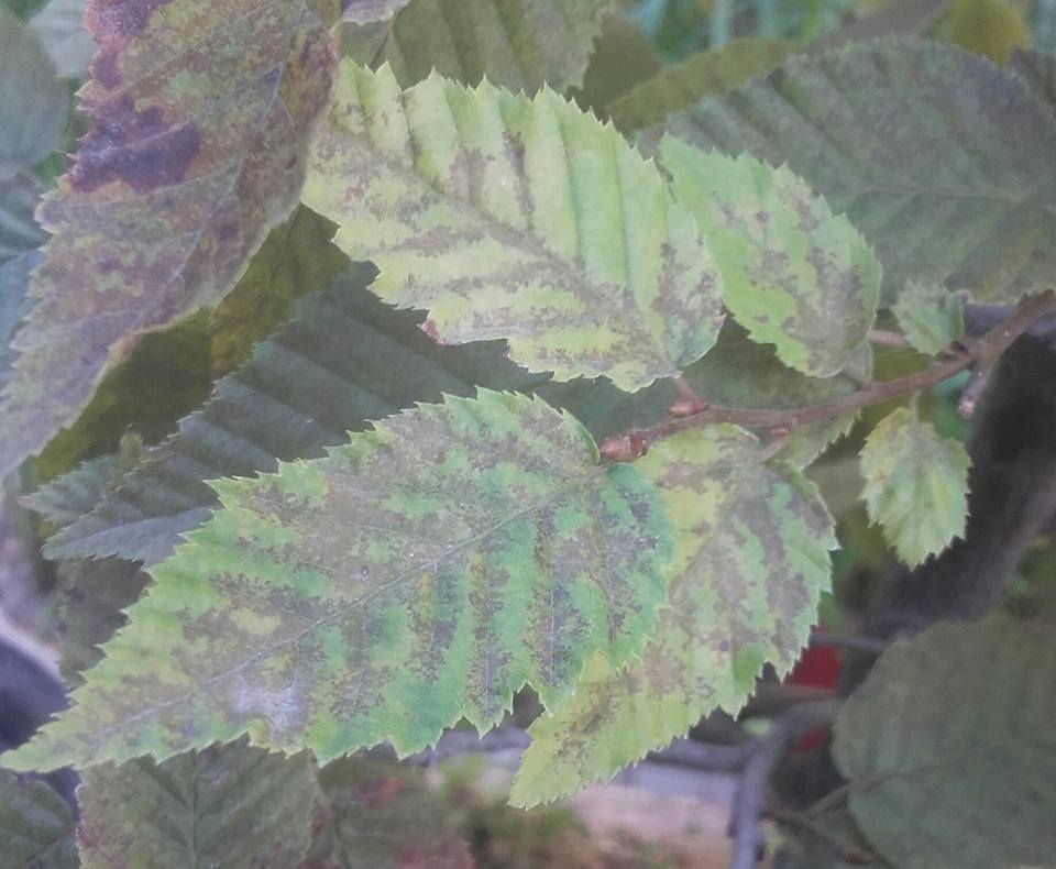 L'apparence de tes feuilles de charme est identique à ce que j'observe sur mon charme atteint du même mal. Mes autres charmes ne montrent pas ces symptômes.