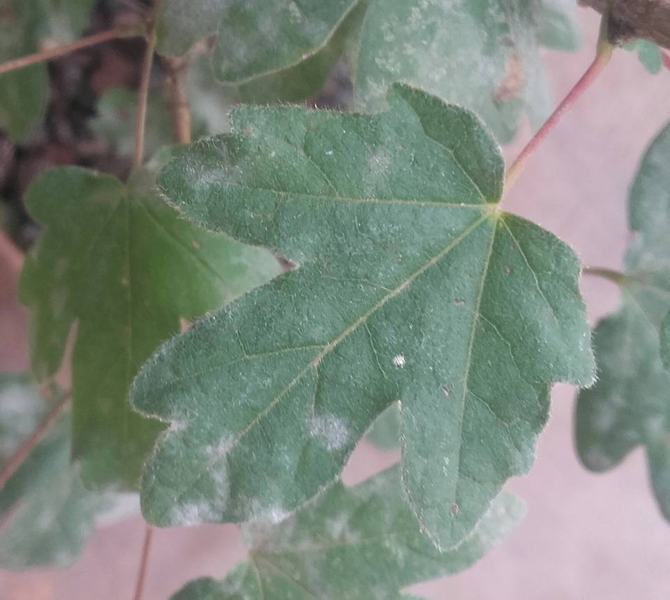Sur ton érable champêtre cela ressemble à de l'oïdium. Les taches sur le charme sont plus grises et suivent les nervures. Sur l'érable elles sont plus blanchâtres et s'étalent indépendamment de la structure foliaire (-> oïdium).