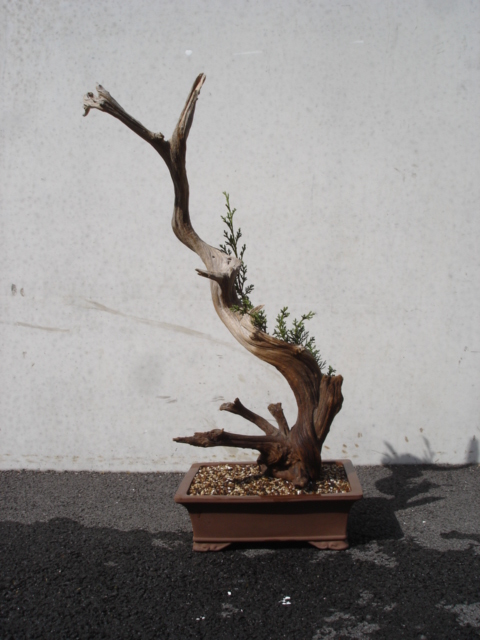 Le premier est un tout petit tanuk sur un bois offert par Tora avec une bouture d’itoïgawa de 2 ans