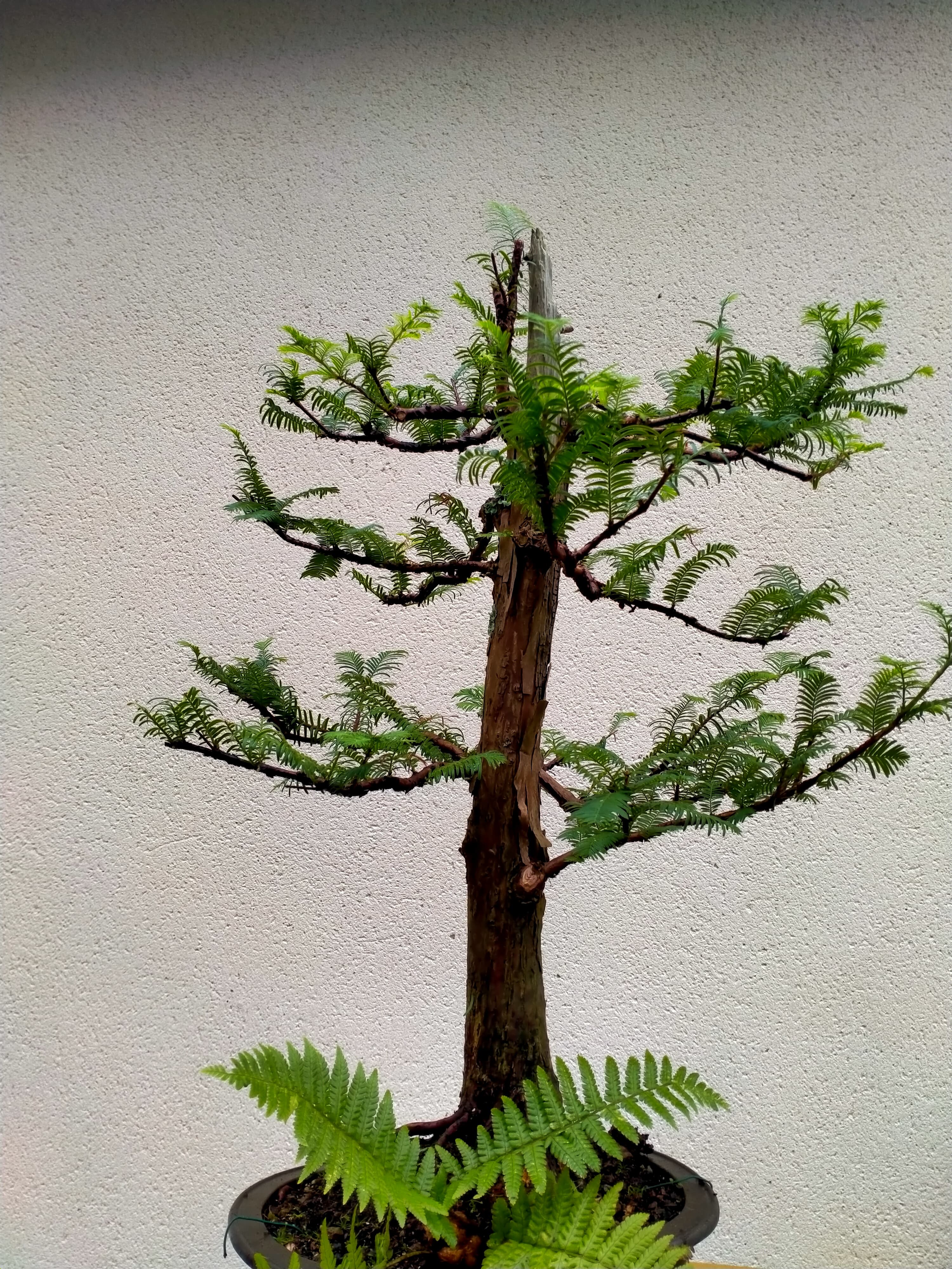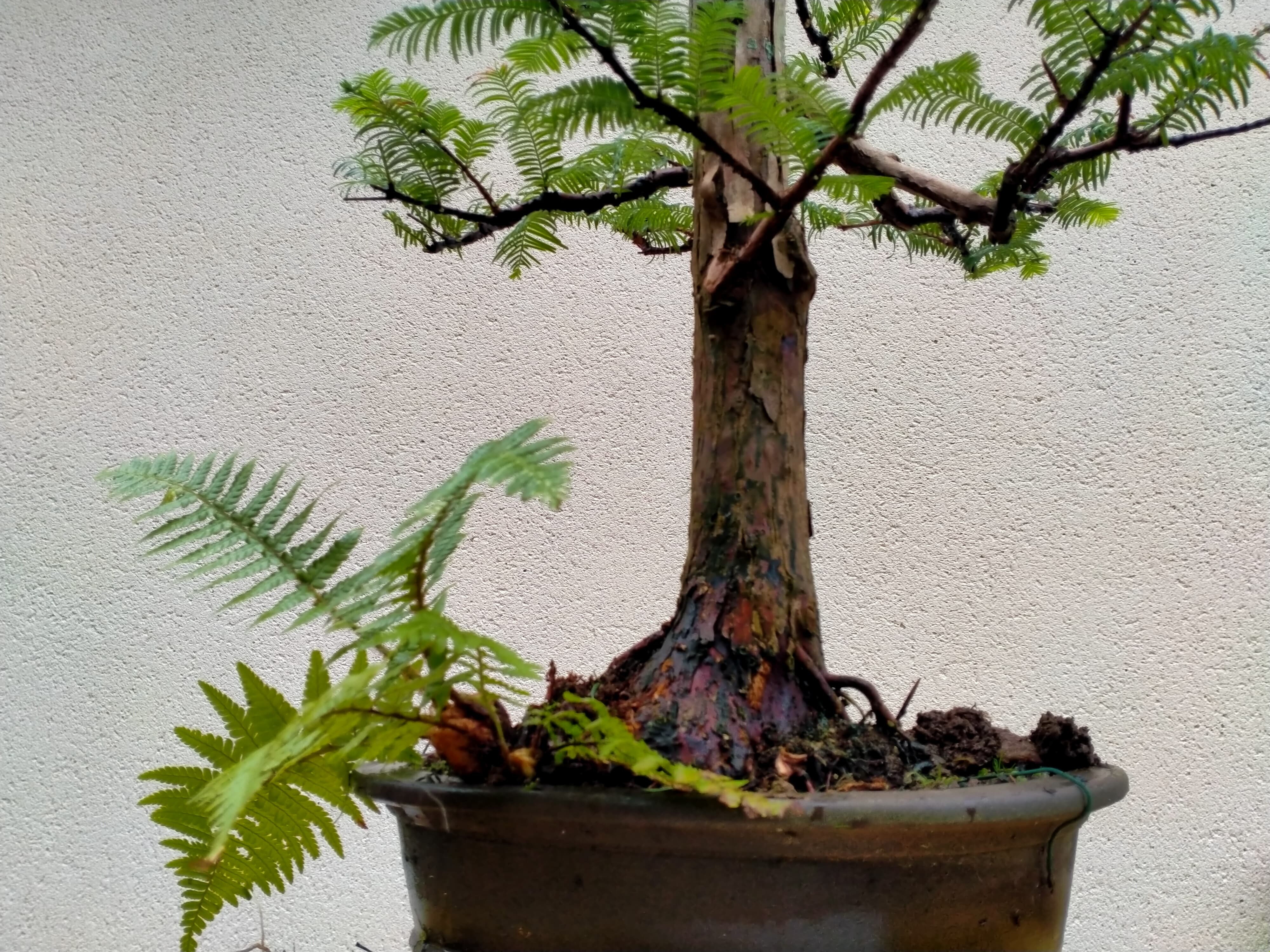 Depuis quelques années je cultive en pot un cyprès chauve de Louisiane. Ce conifère caduque est sympa avec ses couleurs d'automne rouille.