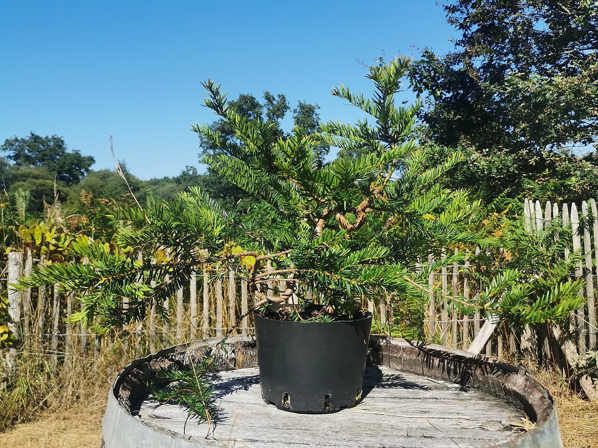 Et bien, voilà un petit taxus bien tourmenté pour débuter une culture pré bonsai ![]()