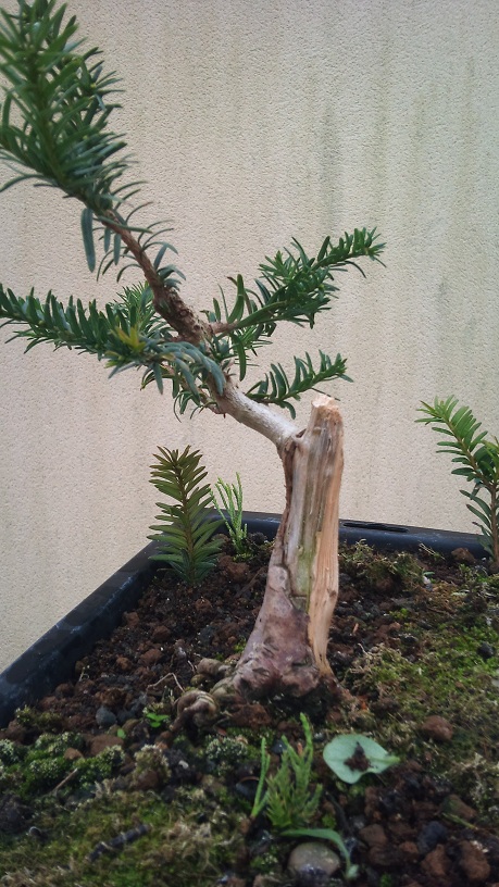 Salut la compagnie , je vous presente ce petit taxus de pepi, je crois que le jour ou je l ai acheté j avais une envie incohersible de bois mort ,malgré ca je pense qu il y a quelque chose a faire …