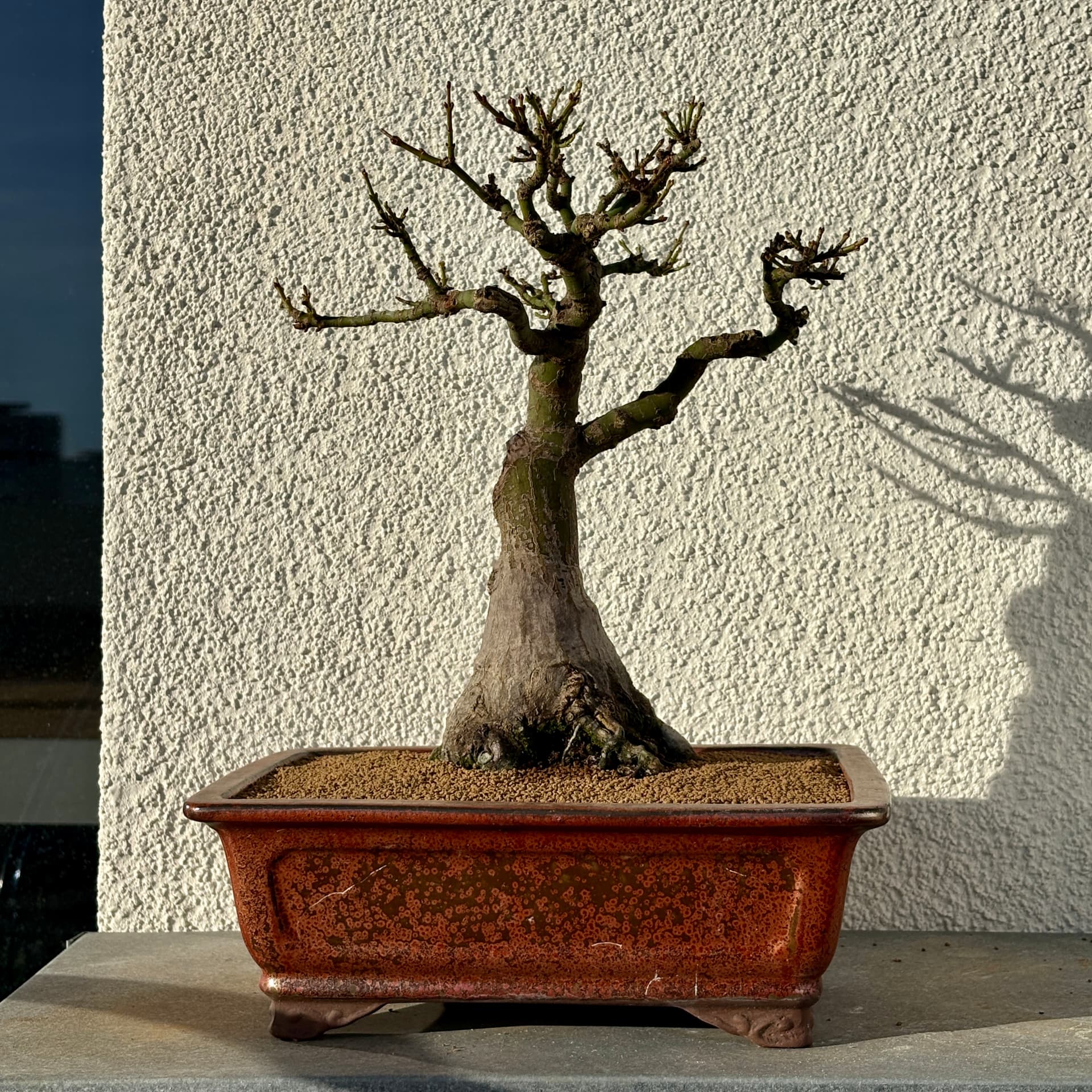 Il y a un une grosse coupe à l’arrière qui devra être gérée, mais je l’ai choisi pour la ligne/conicité du tronc (quoi que presque exagérée), je n’aime pas les shishigashira comme on en voit souvent qui ressemblent à un piquet cylindrique avec gros bourrelet de greffe