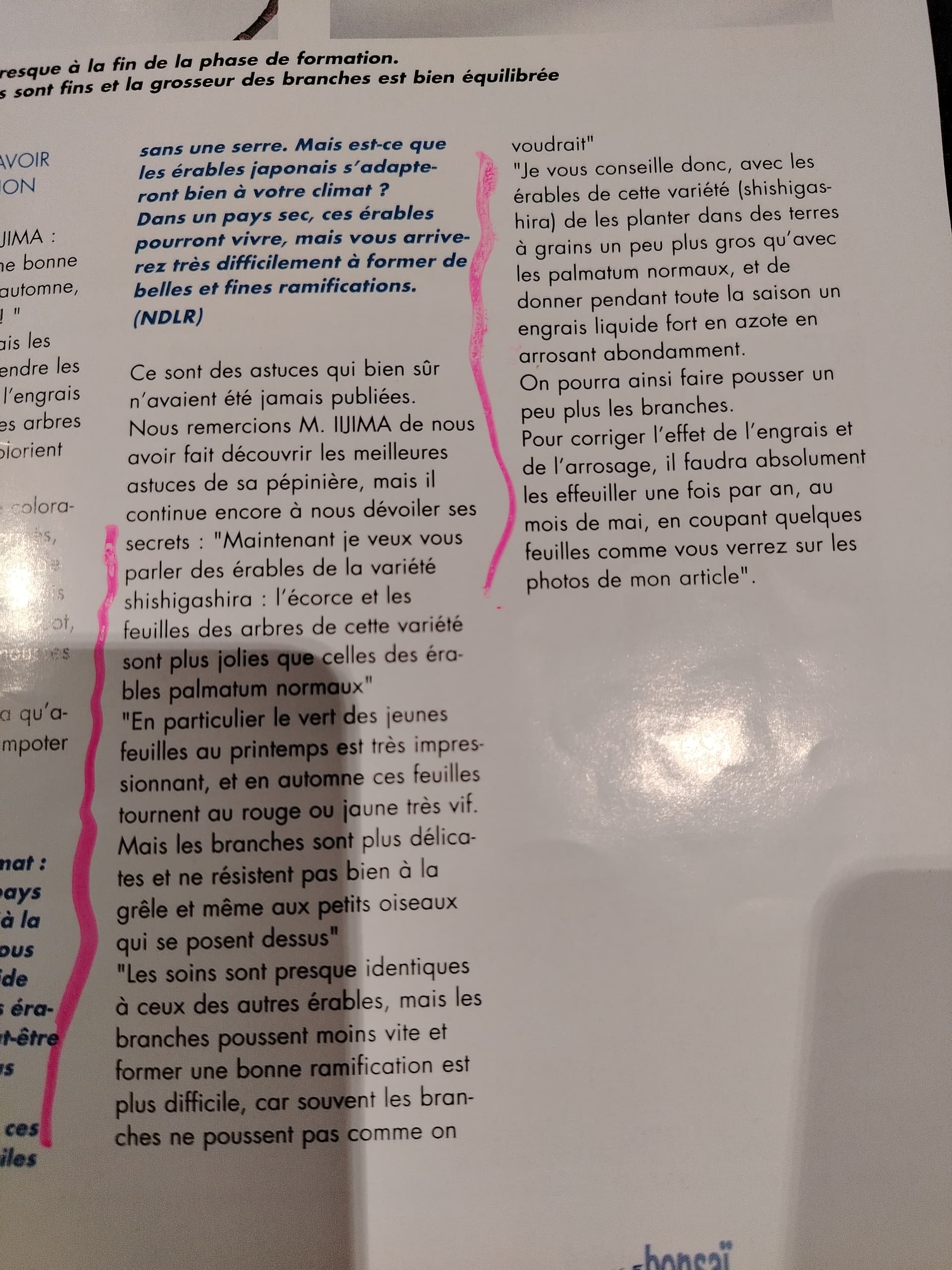 Sur un palmatum “normal” je saurais comment gérer ces départs multiples, mais le shishigashira à l’air bien différent en terme de pousse et de ramification…