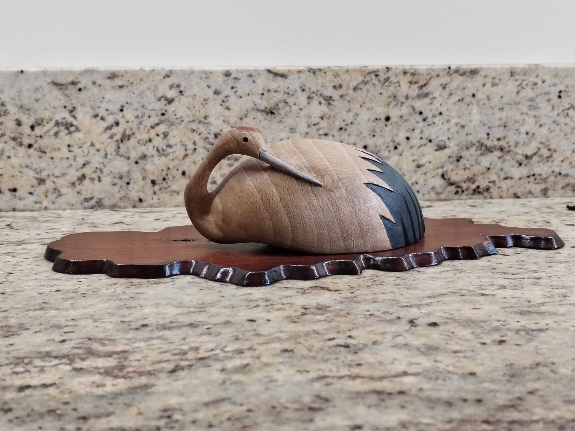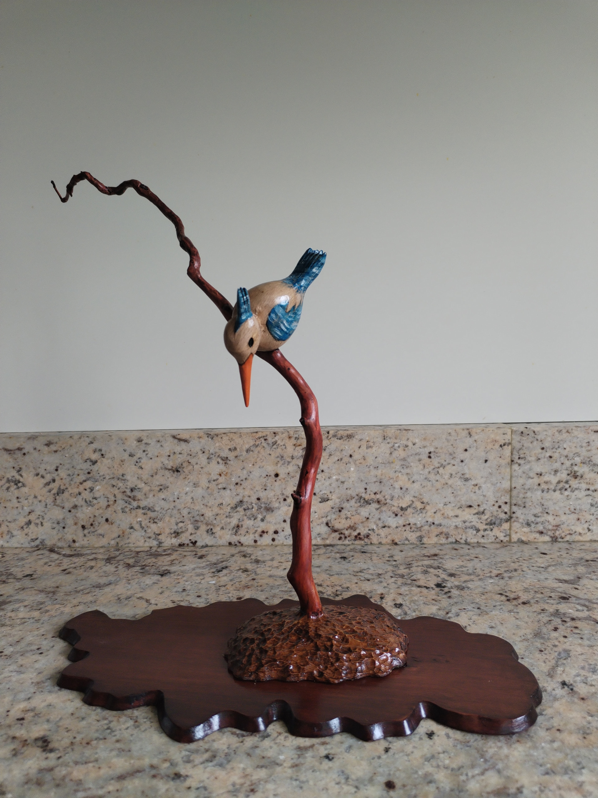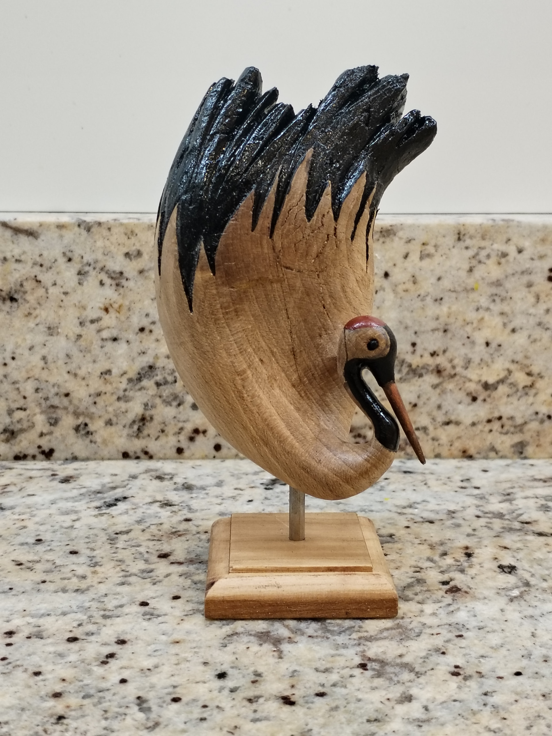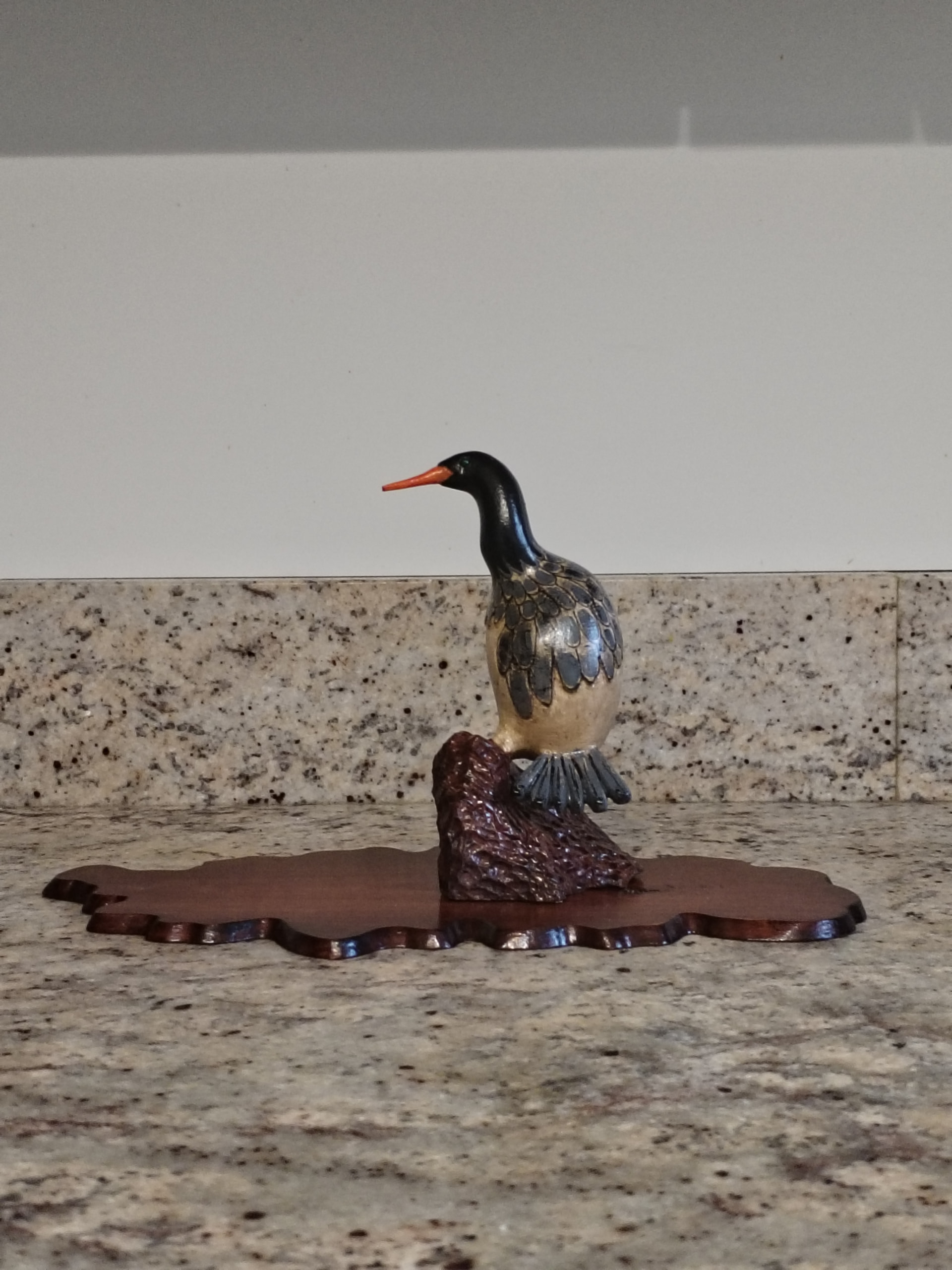 Sur cette figurine en bois de 10 cm de hauteur, il est impossible de sculpter des details aussi fin que le bec, en tous cas, je n’y suis pas arrivé.