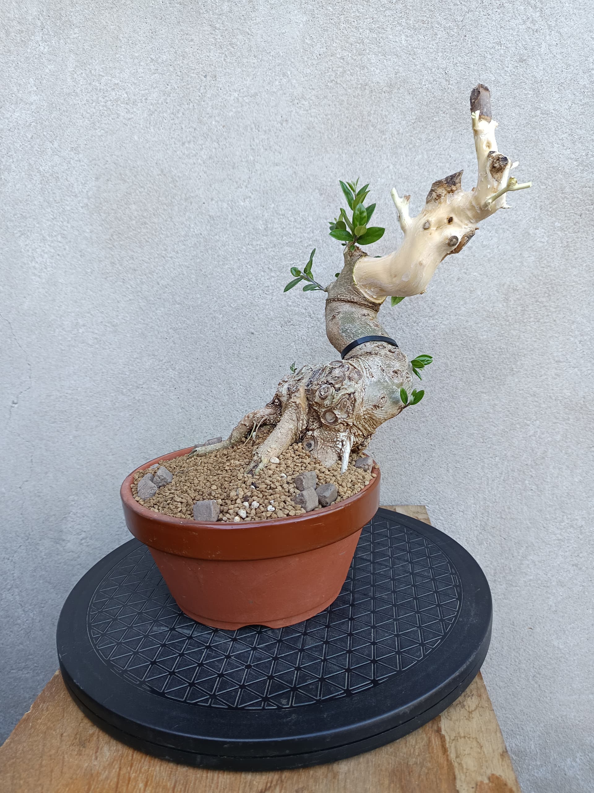 En l’état du travail végétatif réalisé, j’étais satisfait de la reprise et de la vigueur de l’arbre, mais tout restait à faire concernant le projet de Bonsaï