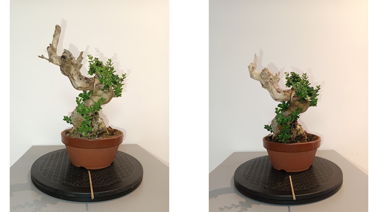 J’ai prévu de retravailler la jonction bois mort/vivant avec la création de 2 sharis qui feront la jonction entre la base et le jin de tête, je préfère créer les sharis en sève !