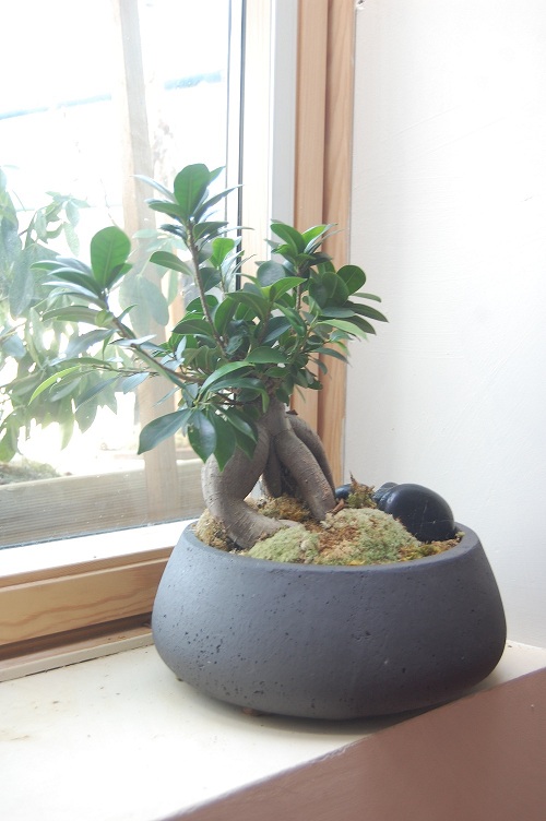 Voilà on commence par le sujet n°1 : un ficus (intérieur) offert par un proche, je crois pouvoir dire sans aucun doute qu’il suffoque : substrat compact et pot hermétique. Il a perdu quelques dizaines de feuilles les deux premières semaines d’acclimatation, maintenant ça va mieux.