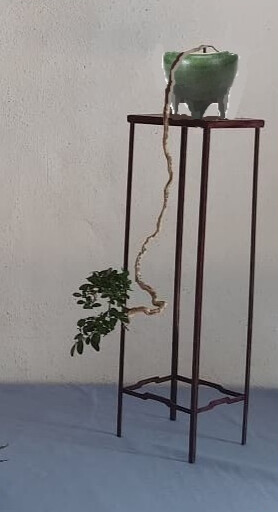 Je trouve ton arbre superbe, on voit peu d’arbre simple comme celui la. La compo est pour moi réussie car elle renforce cette légèreté à l’ensemble. Pour la stabilité, oui essaie de lier le tout, pot, tablette, sur jita.