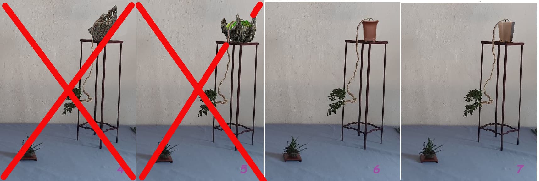 Ne pas oublier aussi de se poser la question, qu’est ce que l’on expose, un arbre ou un pot et dans les différentes propositions on voit surtout le pot
