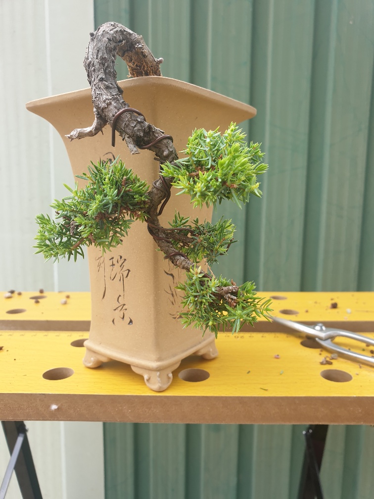 Pour aller dans le sens de BonsaïPhil, je suis d’accord que le pot peut être ultra fin, mais il sera toujours visuellement trop gros pour ce tronc rikiki.