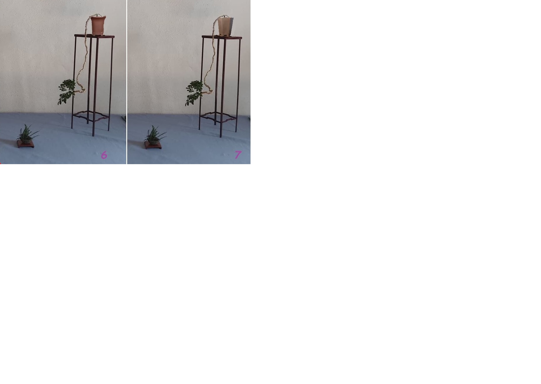 Je n’ai plus mon logiciel de traitement d’image sinon je t’aurai fais un beau virtuel avec un mon pot cascade de la bonne couleur, telle que la couleur de l’écorce du buis