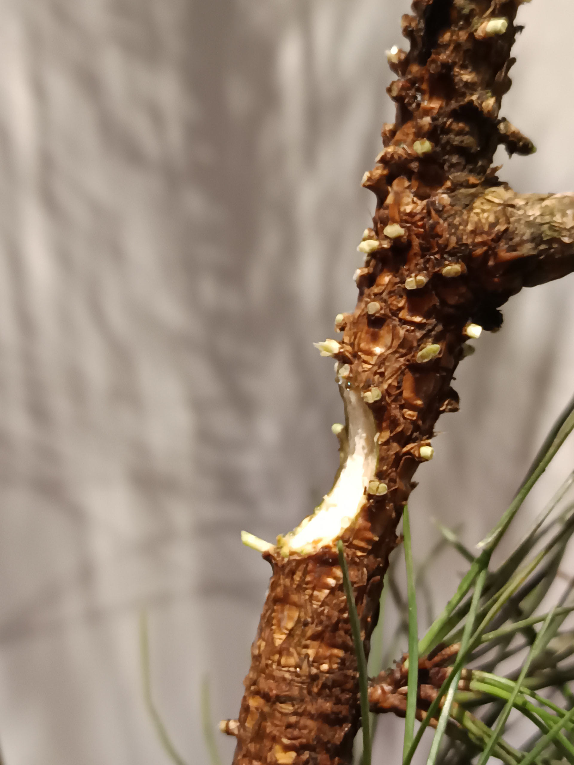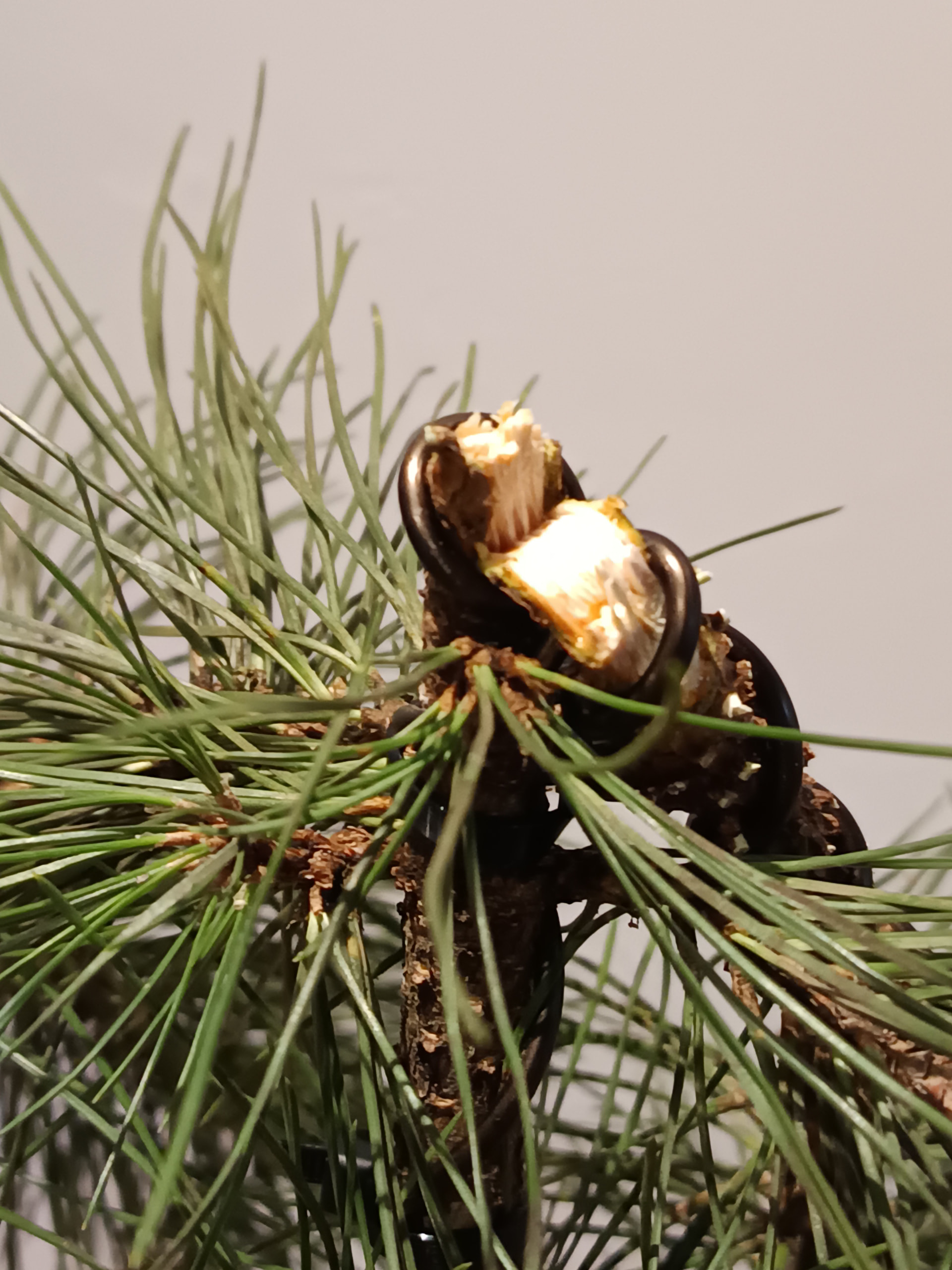 Regarde au début du sujet, j’ai abaissé une branche de pin blanc par déchirure, à suivre la cicatrisation au printemps ![]()