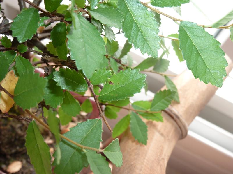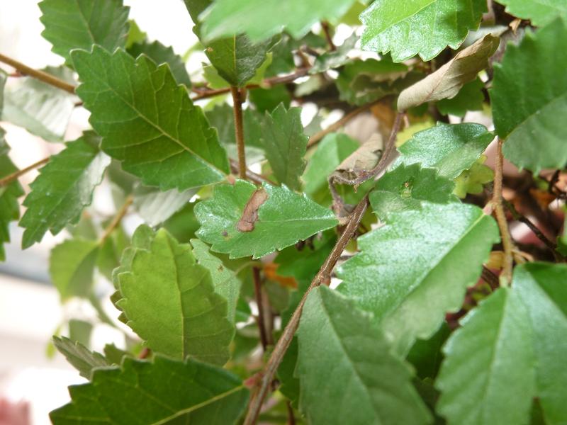 On m’a offert un Ulmus Chinensis il y a 3 semaines et depuis qu’il est chez moi, les feuilles jaunissies progressivement et tombent. J’avais réussis à ralentir se phénomène en l’arosant un peu plus mais maintenant je vois apparaitre des tâches noir avec parfois un petit trous sur certaine feuilles.