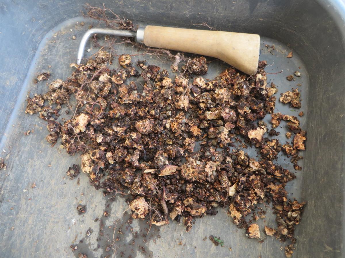J'ai lavé à l'eau de javel les bacs plastique qui ont contenu les rognures du cal et l'ancien substrat