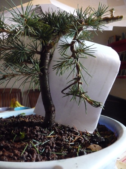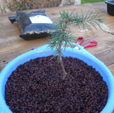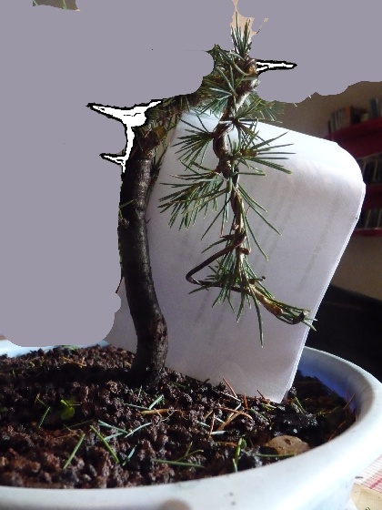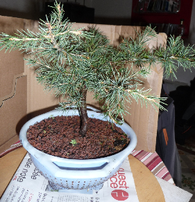 Voici le monstre après le rempotage dans de la pouzzolane et un peu d’écorce. (février 2010)