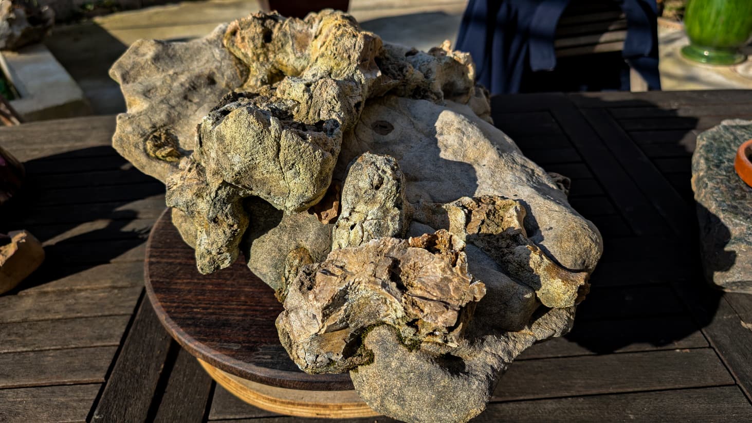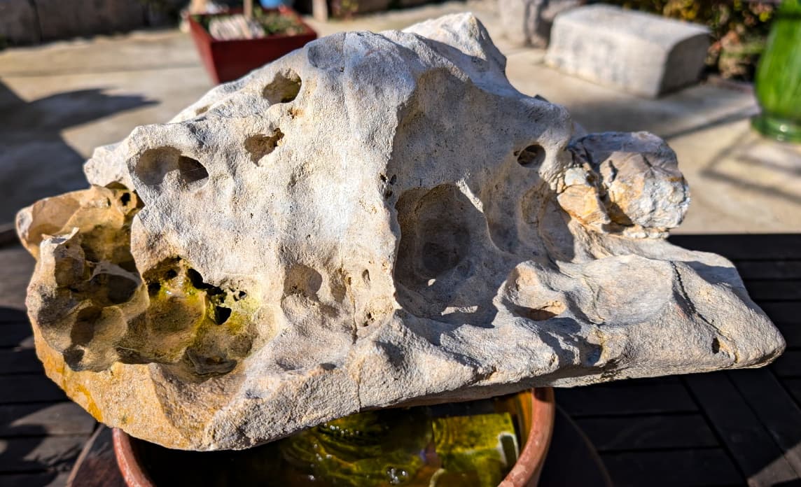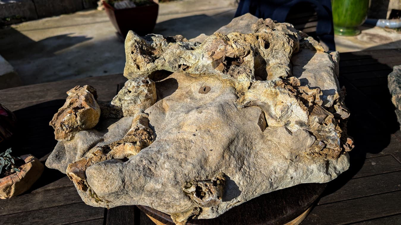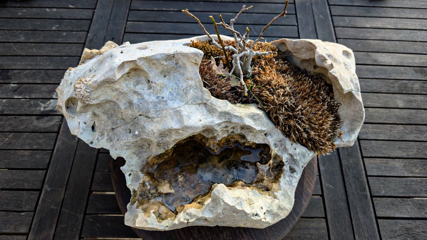 pour le moment posé sur un pot mais par la suite intégrée a un paysage sur une grande lauze .