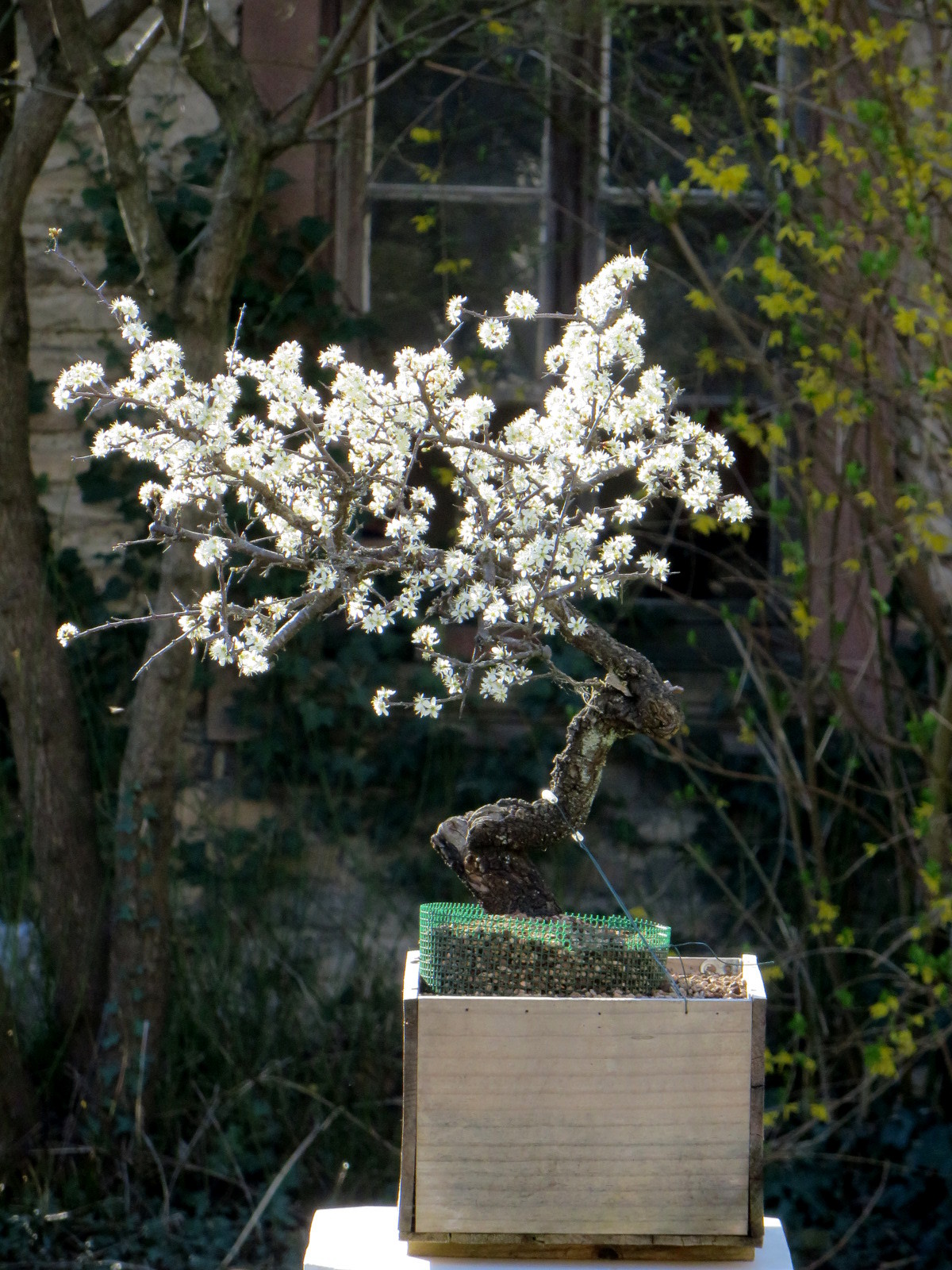 Tout en comblant l'espace inoccupé et en approchant du bord de la caisse je me rend compte que mon prunellier commençait à prendre une toute autre allure.