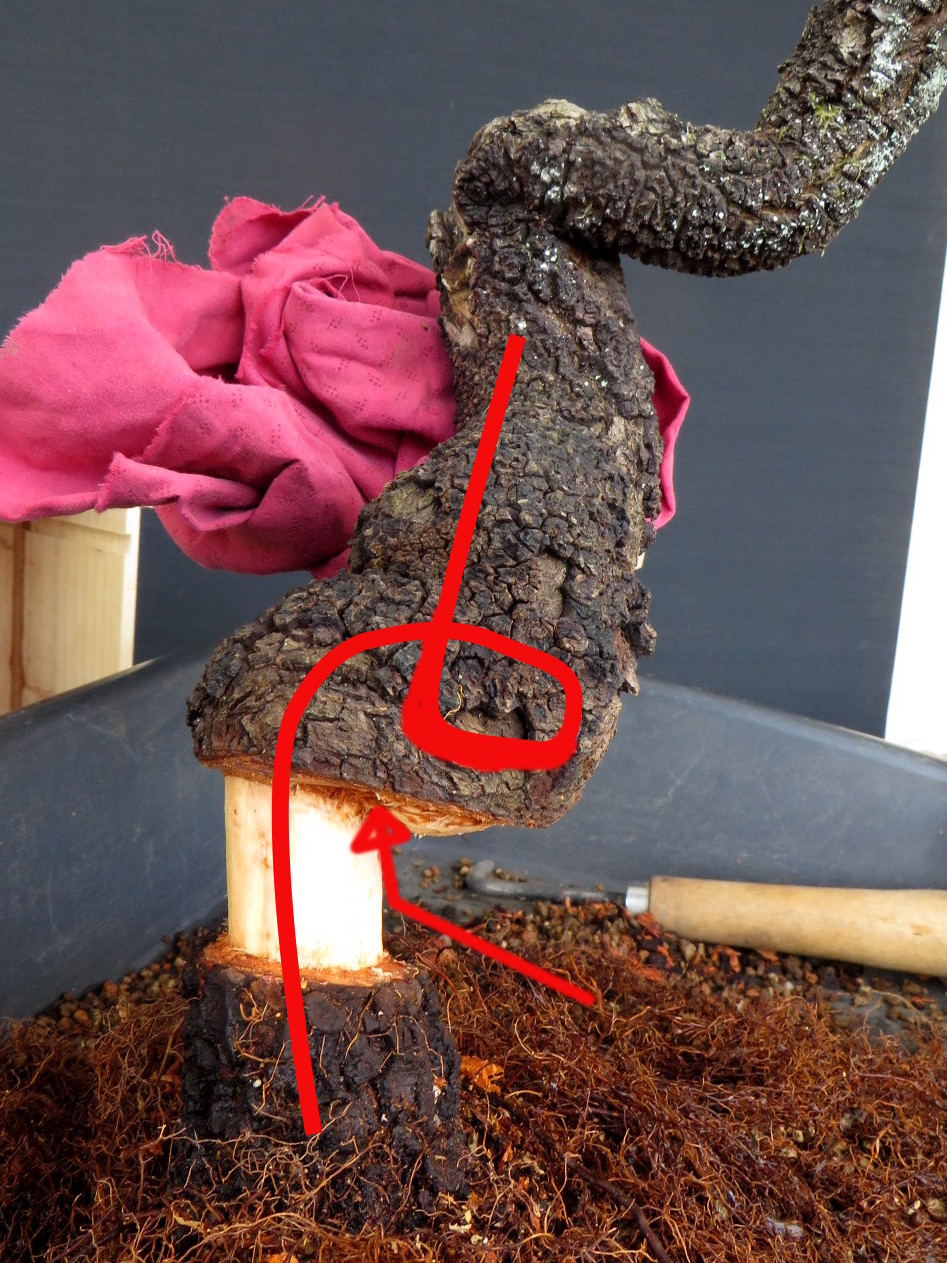Le plus important pour l'instant est d'obtenir des racines à cet endroit très spécial de la ligne de tronc. C'est carrément un surplomb.