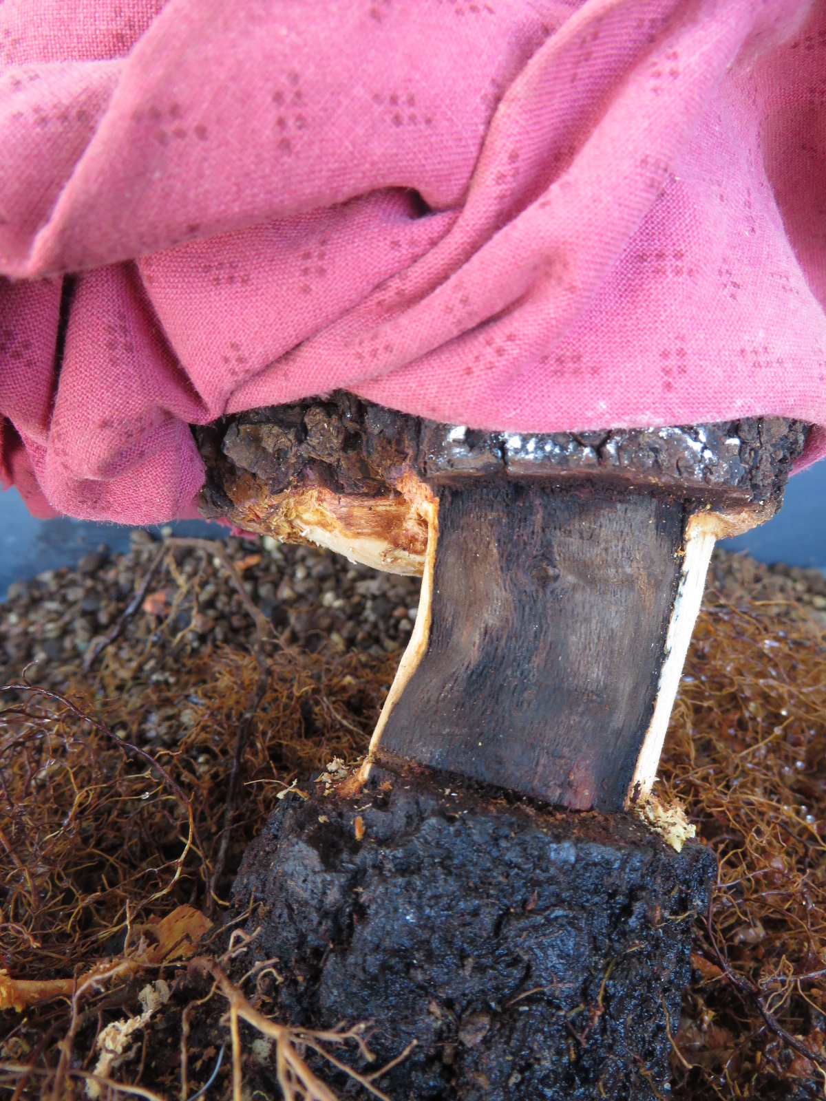 Comme le montre ce message, j'étais tout focalisé à la sécurisation de l'arbre sevré et à un dispositif qui puisse le faire tenir dans un pot à bonsai.