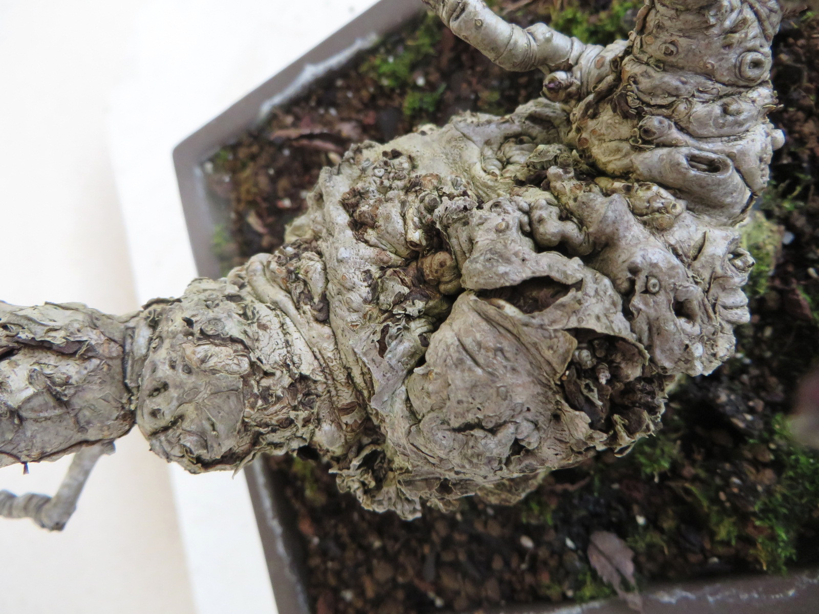 Il n’y a pas de tronc principal à proprement parler mais une espèce de broussin dont émergent des branches. Cette boule m’a rappelé une bombe volcanique