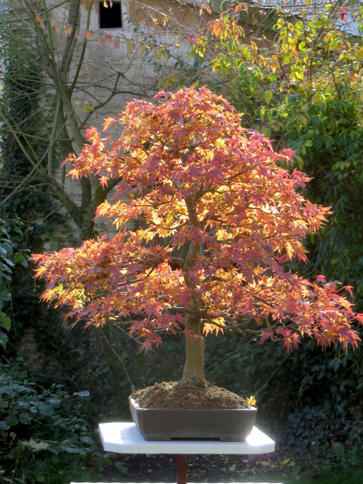 Ton arbre, que tu travailles depuis 40 ans, je lui trouve un manque de matière dans le nebari et dans les branches (ça manque de secondaire à mon goût). Ne t’en aurait il pas donné plus s’il avait été mieux nourrit? Je pose sincèrement la question, ne cultivant pas d’érable moi même.